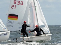 „Das war richtig gut“, freute sich Philipp über das Ergebnis und die Verbesserung im Medal-Race, das bei Sonne und fünf Knoten Wind vor Schilksee gesegelt wurde.