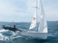 In Hyères wird am Samstag (26.April) das Medal-Race der 470er (wie auch in den anderen olympischen Klassen) ausgesegelt. In Führung liegt mit bereits 17 Punkten Vorsprung Olympiasieger Mathew Belcher mit William Ryan (Australien). Jan-Jasper Wagner und Dustin Baldewein (Berlin) haben sich als beste Deutsche auf Rang zehn gerade noch für das Medal-Race qualifiziert. Ebenfalls bereits fertig sind Gerz/Szymanski, die sich an den vergangenen beiden Tagen noch auf Rang 18 verbessern konnten.
