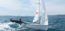 „Das war sehr ärgerlich“, kommentierte Philipp den Rennverlauf. Nach einem guten Start kamen die Augsburger als Dritte an die Luvmarke. Als nachher der Wind zusammenbrach, fielen sie bis auf Rang 19 zurück, holten dann bei eigentlich gar keinem Wind noch einmal vier Boote und überquerten auf Platz 15 die Ziellinie – fünf Sekunden hinter dem Olympiasieger Matthew Belcher. Das Rennen gewannen die Franzosen Guillaume Pirouelle und Valentin Sipan.
